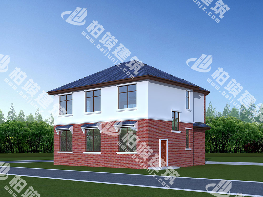 外墻設(shè)計:大面積小塊紅磚鋪出復(fù)古韻味,小范圍白色真石漆注入清新氣息