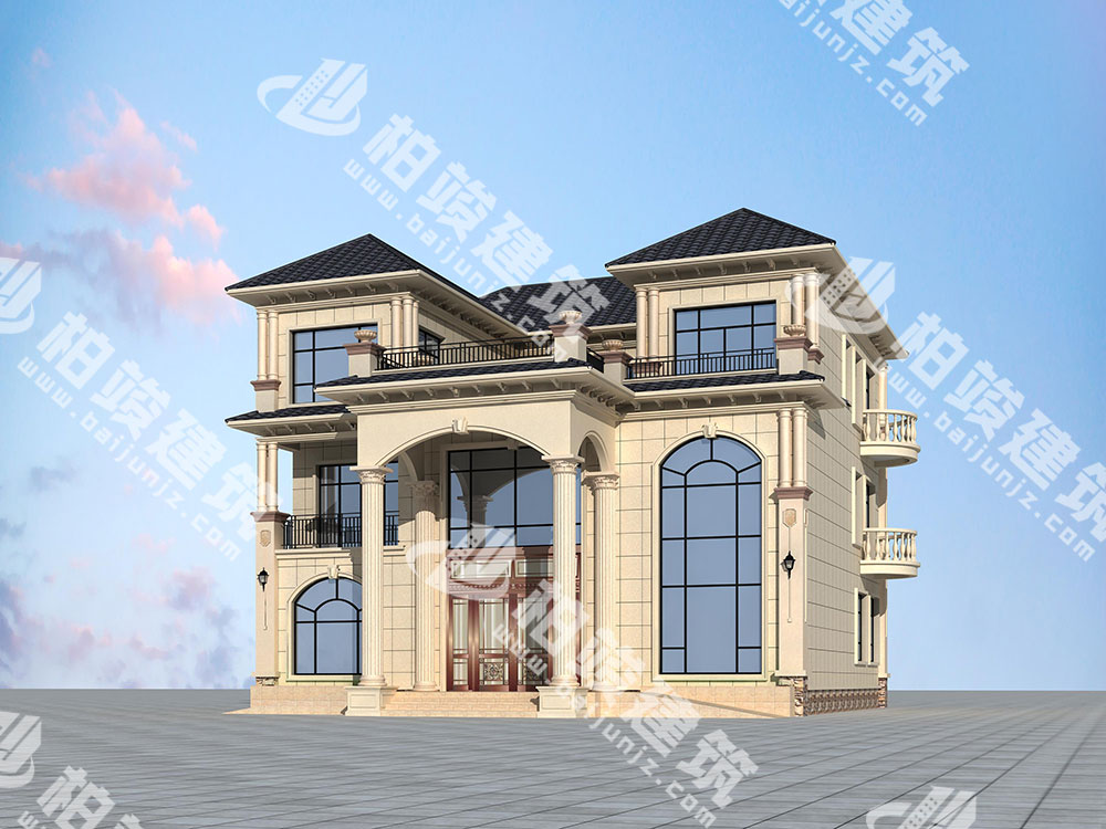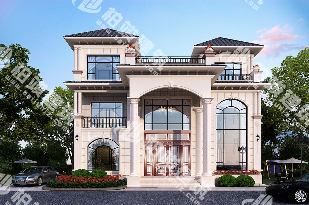 歐式構(gòu)件:經(jīng)典羅馬柱、歐式雕花、花盆、花瓶型護(hù)欄、簡約窗套相搭配,營造典雅歐風(fēng)