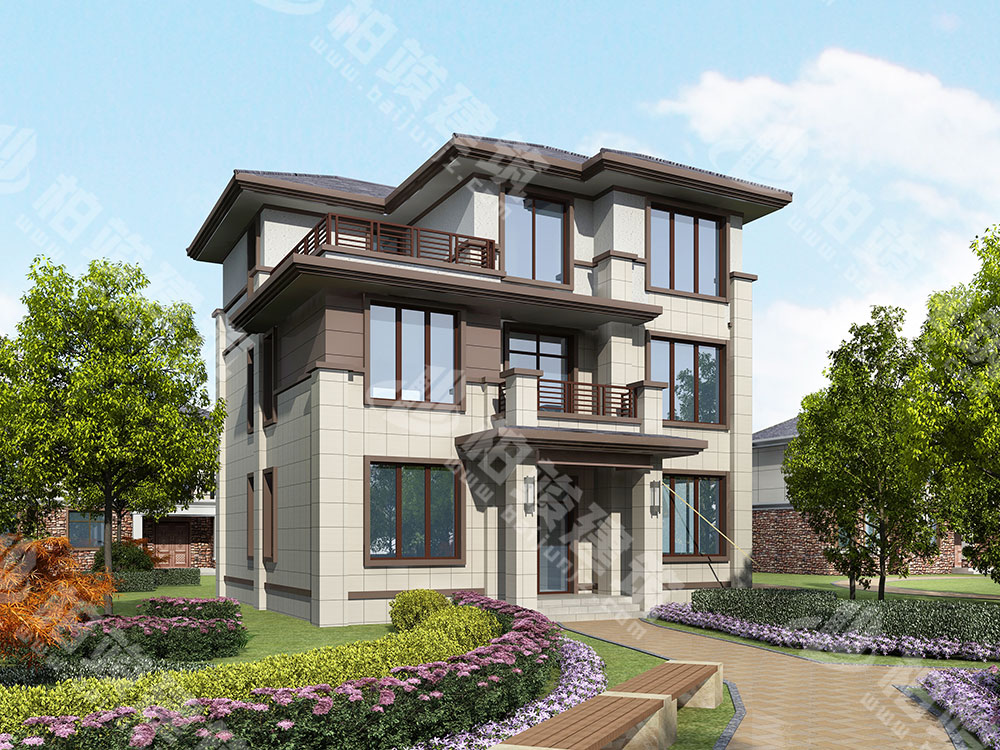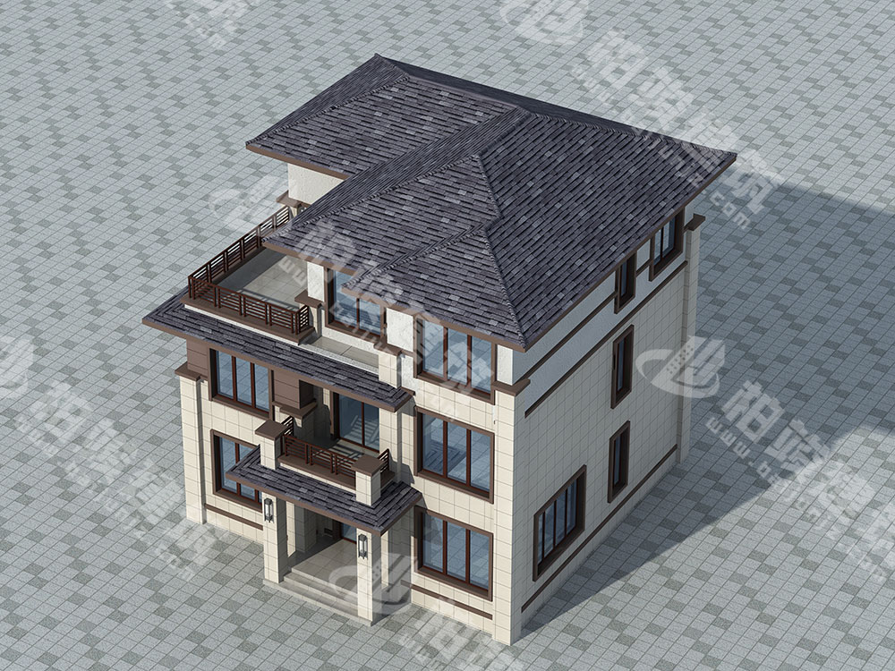 屋頂造型:瀝青瓦鋪設坡形屋頂,多個立面層次豐富